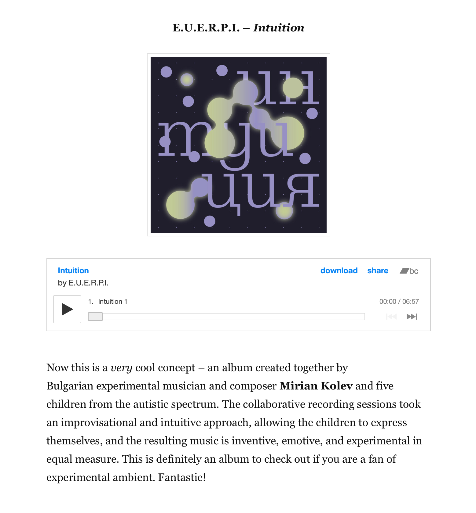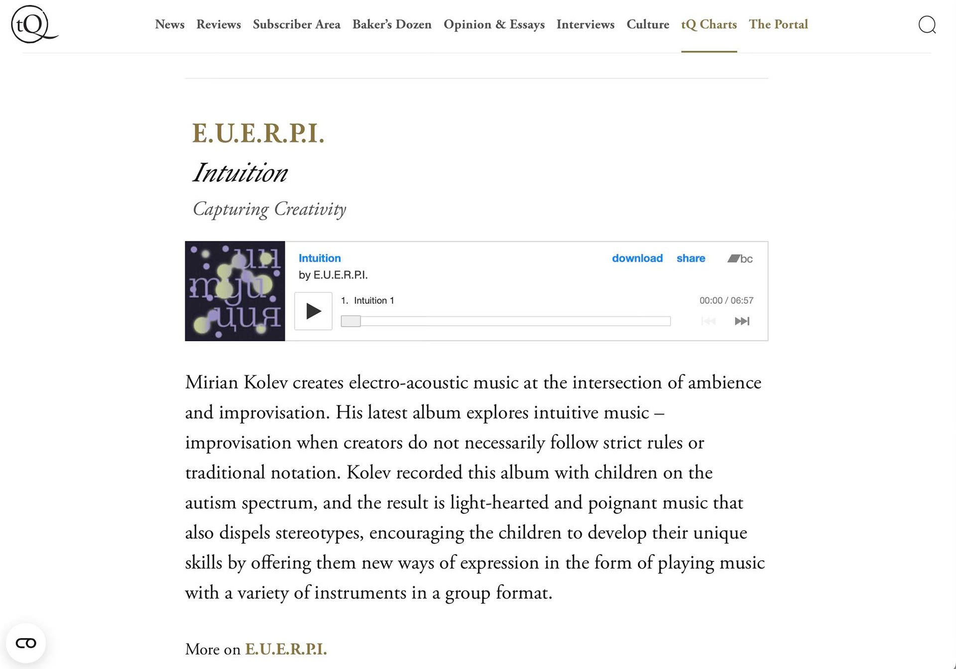 Албумът на Мирян Колев „Интуиция“, е включен в годишната музикална класация на The Quietus.