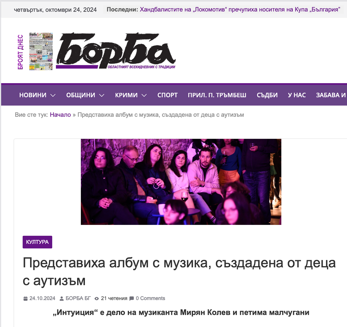Музикалният проект "Интуиция" разкрива таланта на деца от аутистичния спектър