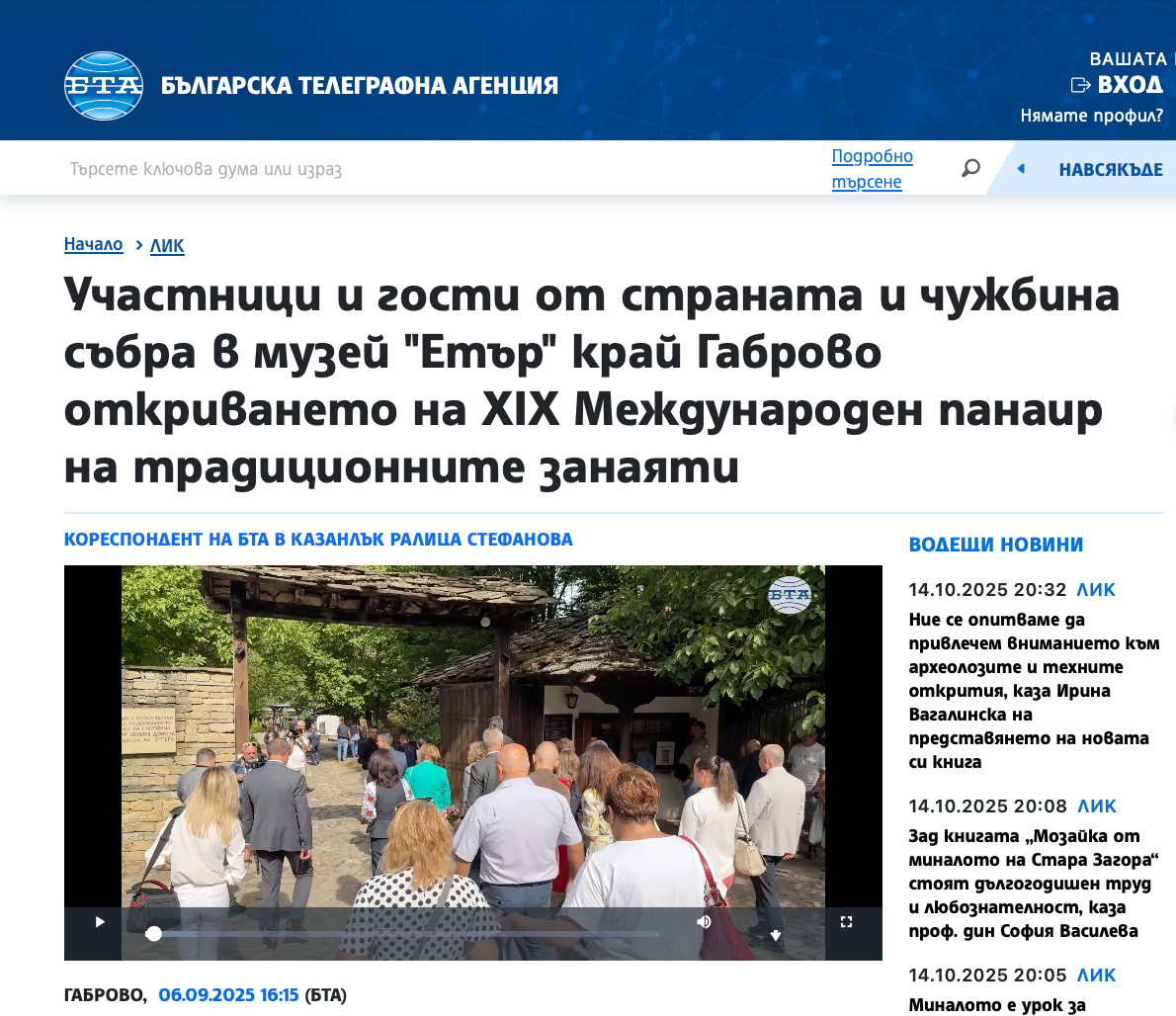 10.09.2025, информационен сайт „Габрово Нюз“, рубрика Култура