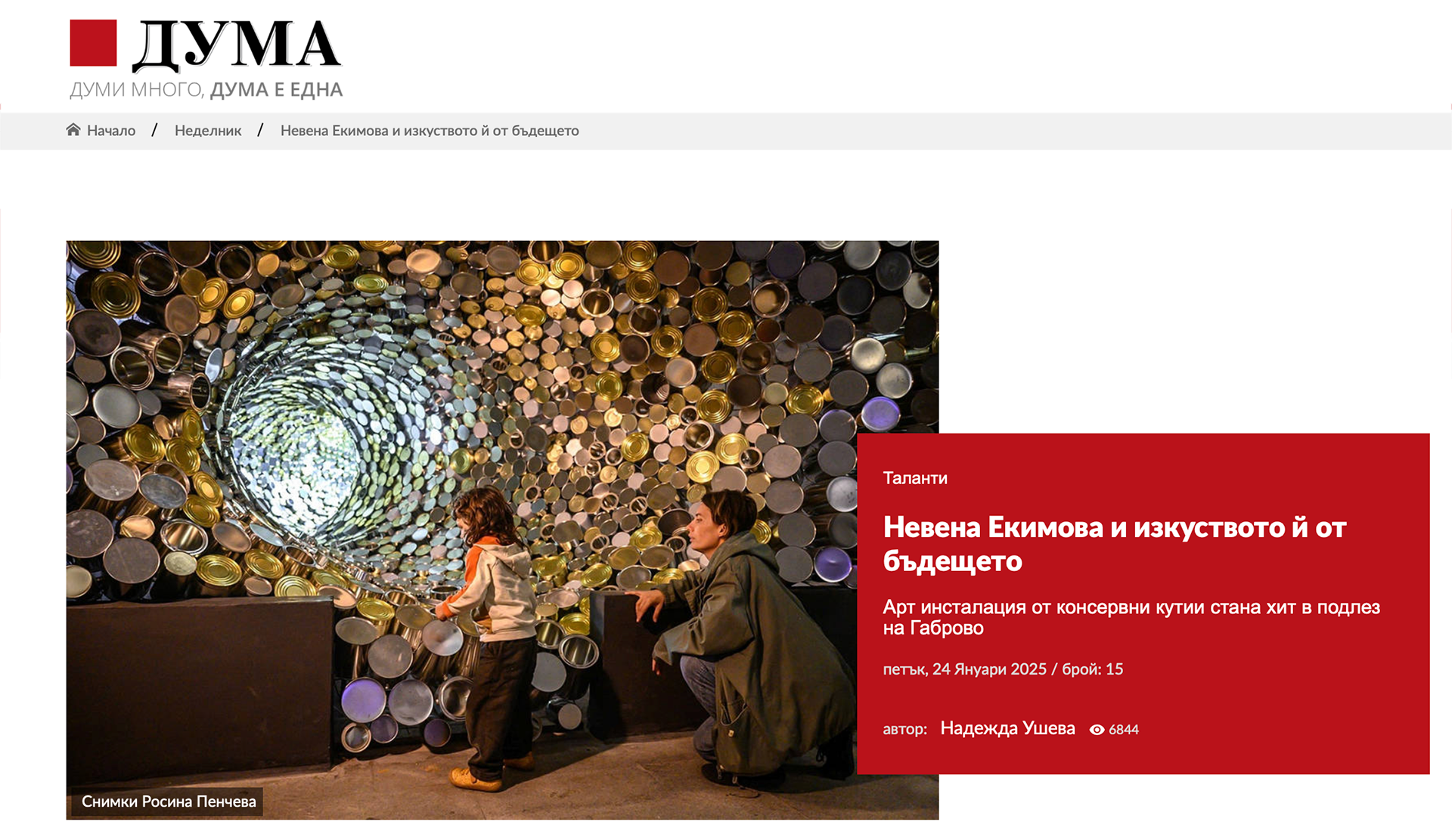 24.01.2025, вестник ДУМА, брой: 15, рубрика: Таланти, автор: Надежда Ушева