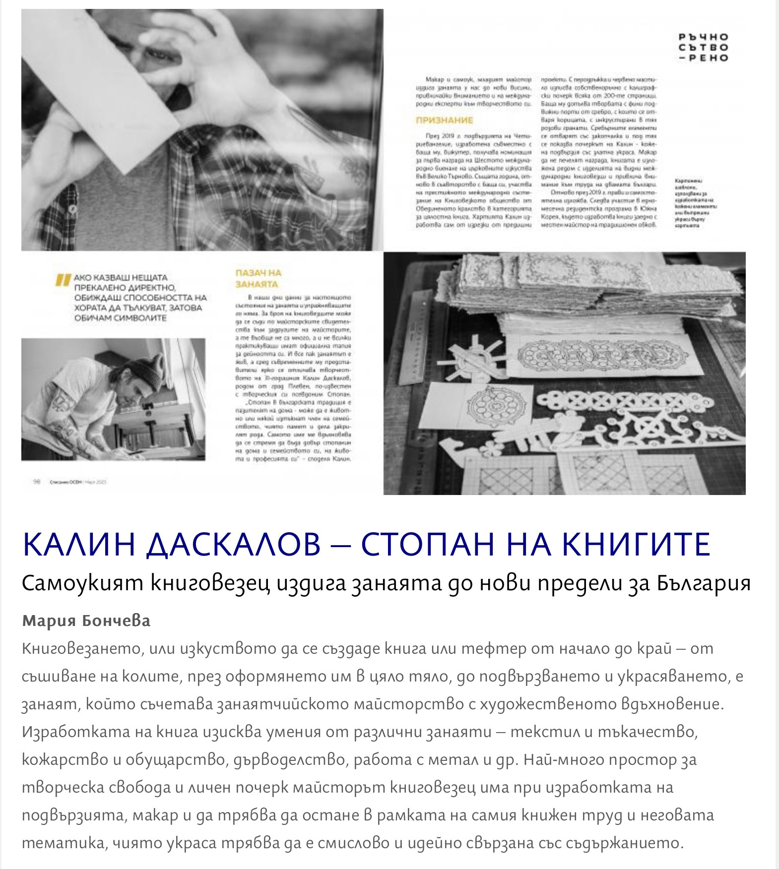 10.03.2023, списание „Осем”, авторска статия на Мария Бончева
