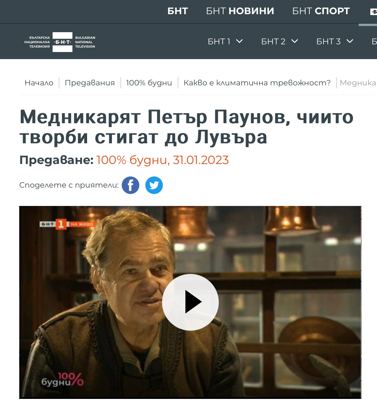 31.01.2023, предаване 100% будни, БНТ 1, водещи: Стефан Щерев и Надя Иванова, репортаж на: Нина Янакиева, гост в репортажа: Петър Паунов