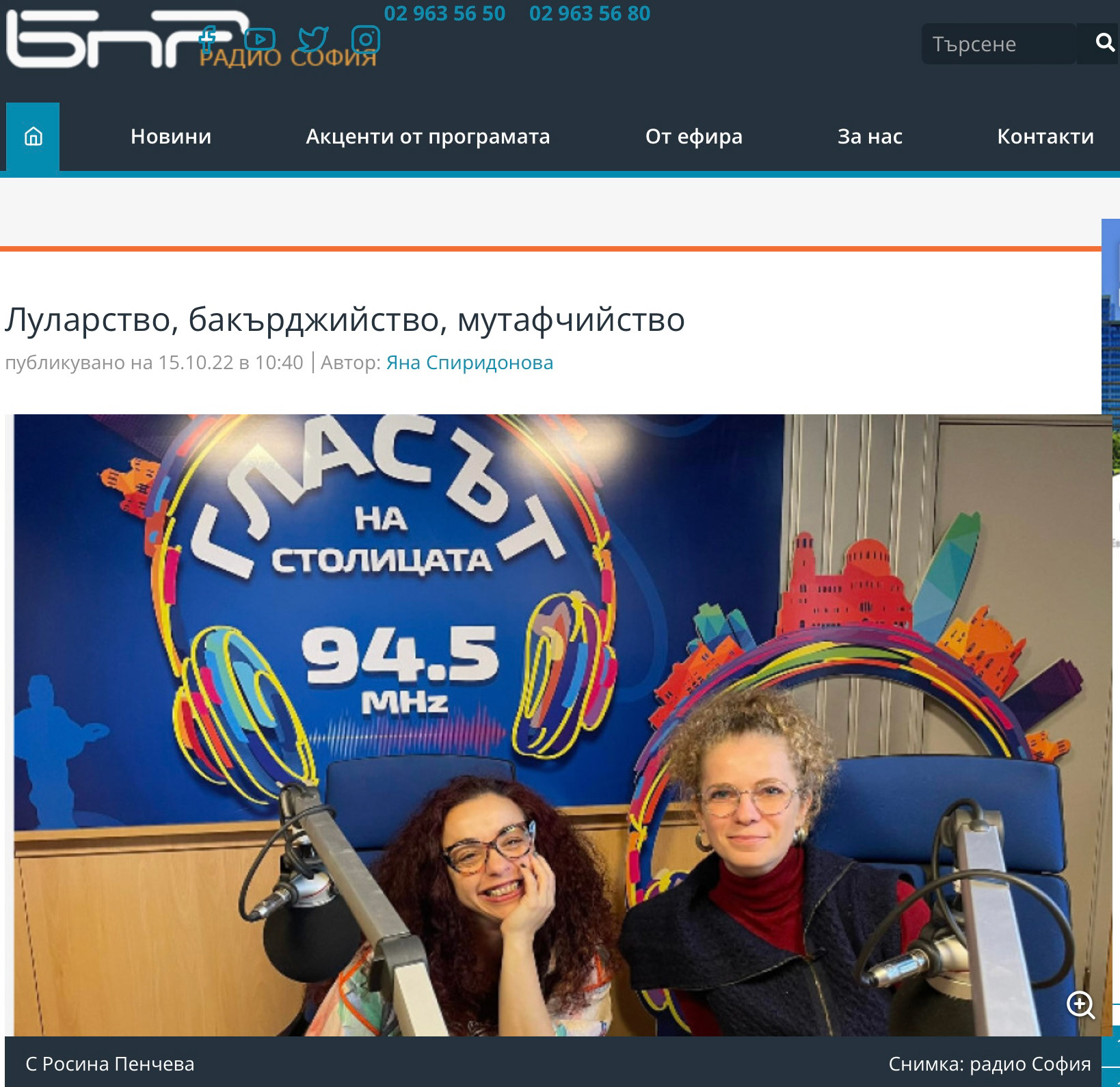 15.10.2022, предаване „Радиокафе”, БНР, водещ: Яна Спиридонова, гост: Росина Пенчева