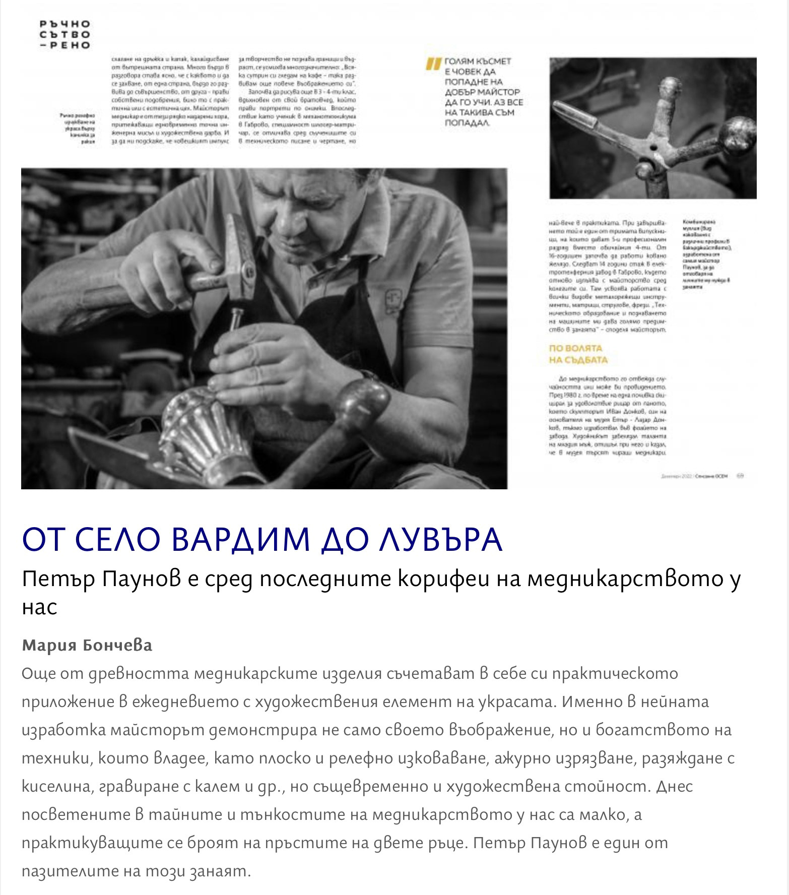 08.12.2022, списание „Осем” (печатно издание), авторска статия на Мария Бончева