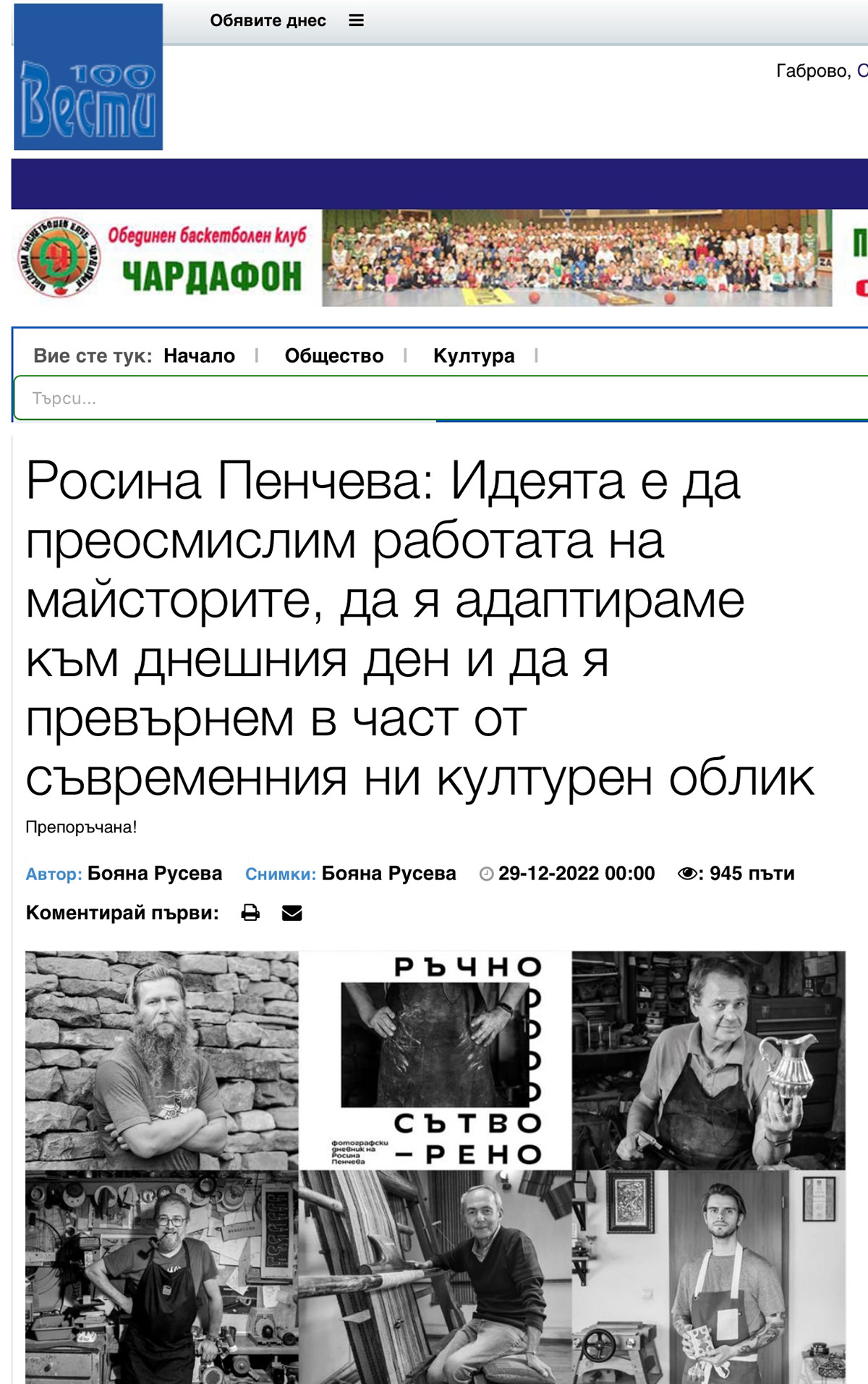 29.12.2022, вестник „100 вести”, интервю на Бояна Русева с Росина Пенчева