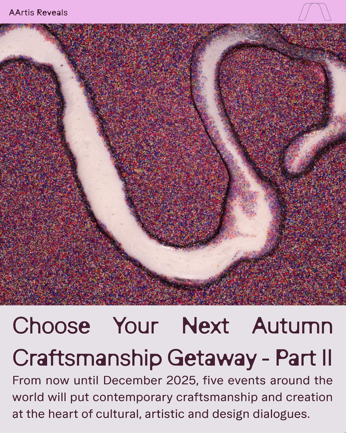 AArtis открива, отбелязва и свързва съвременното майсторство, дизайна и културата, акцентирайки върху автентичност, човешки талант и творческа изява. В селекцията на платформата са включени събития от Испания, Узбекистан, Франция и България, които поставят съвременното майсторство и културата в центъра на международния диалог.