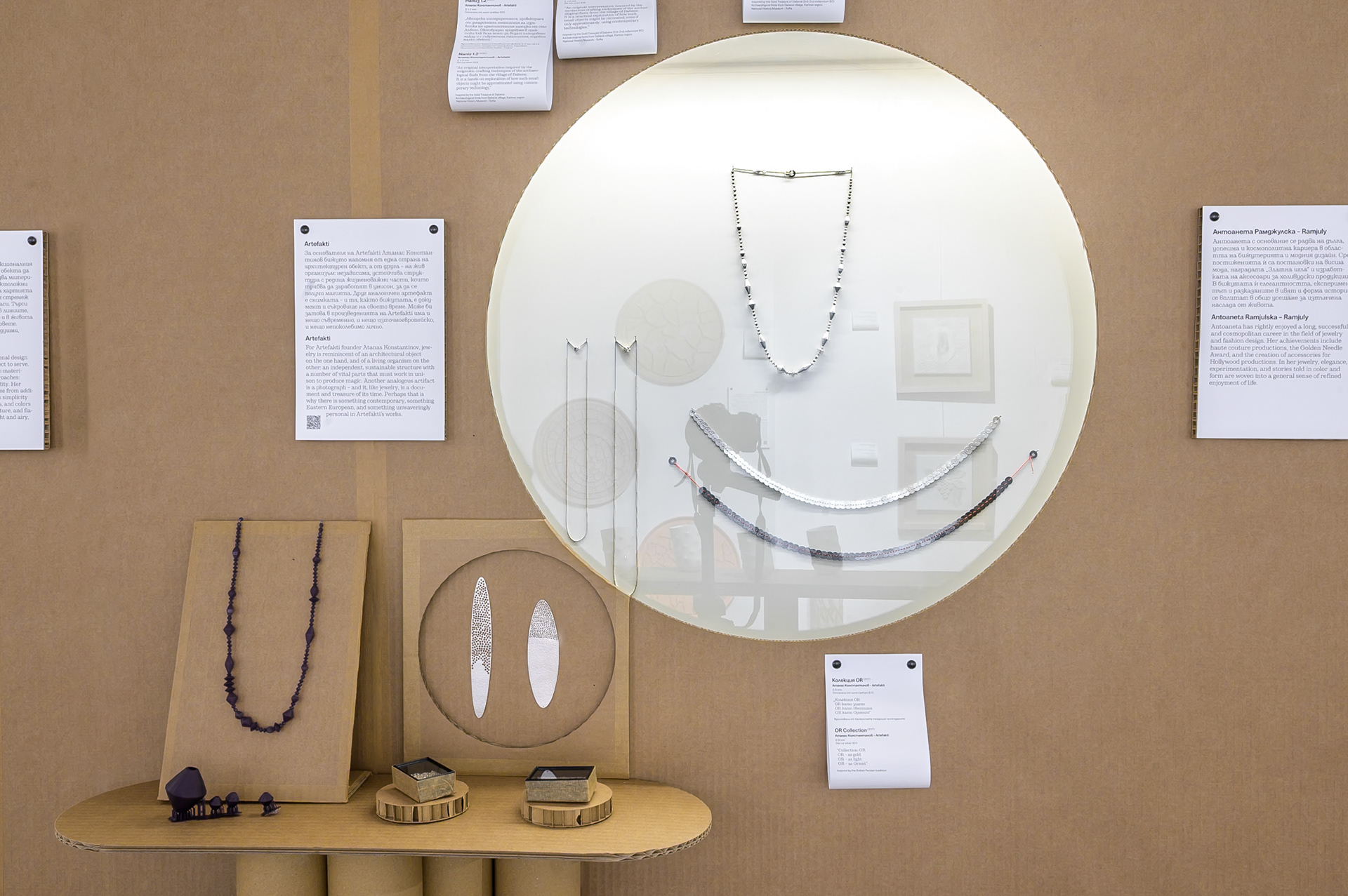 Бижутата, с елементи с диаметър под два милиметра, съчетават традиционни техники с иновативни процеси и превръщат метала в архитектура от светлина. Проектът е осъществен със съдействието на Националния исторически музей – България и е част от кураторската селекция на Росина Пенчева за изложбата „НОВОТО ЦЕННО“ в музей „Етър“.