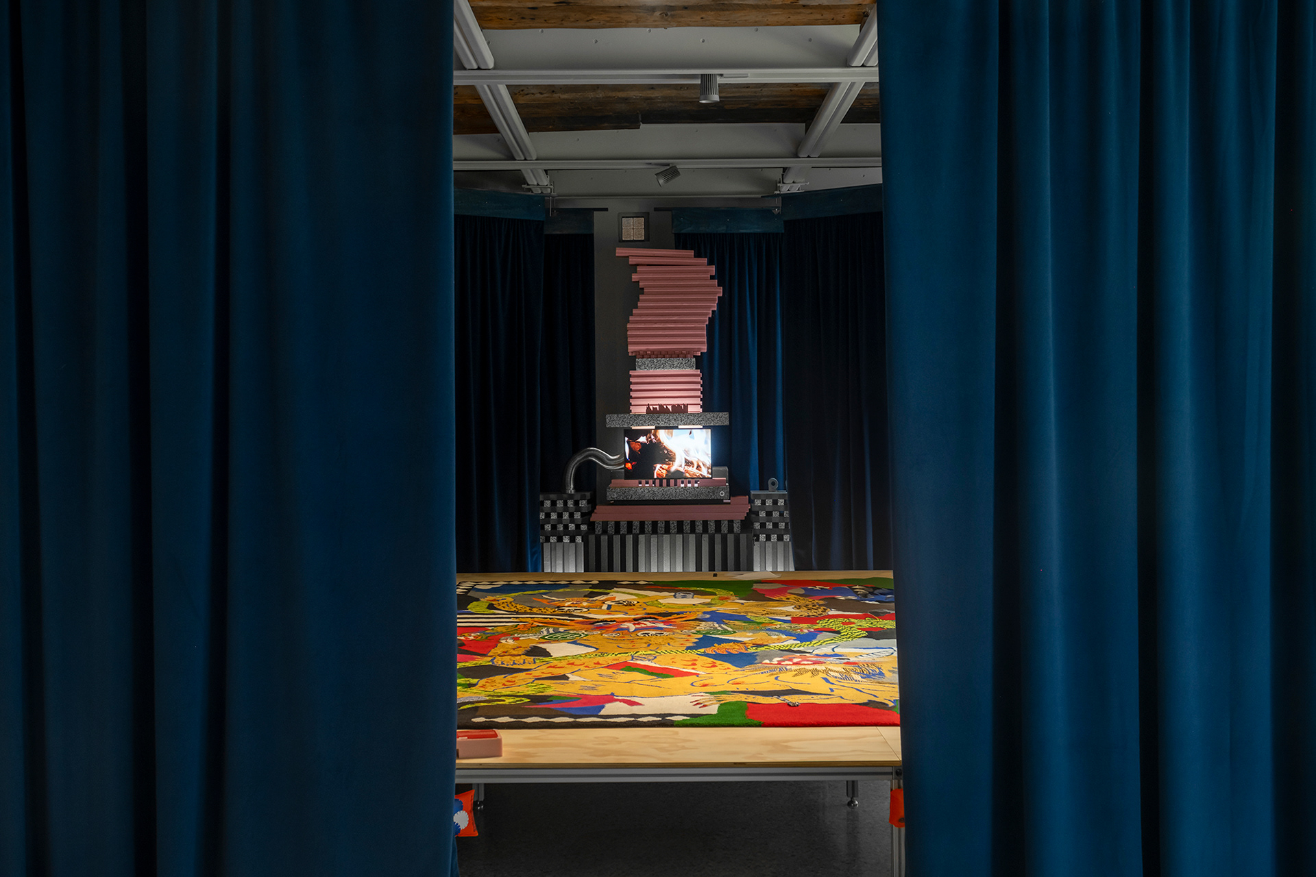 Килим на Rosie Eisor, част от Българския павилион на Венецианското архитектурно биенале 2025. Куратор: Ясен Марков. Фотография: Златимир Араклиев.