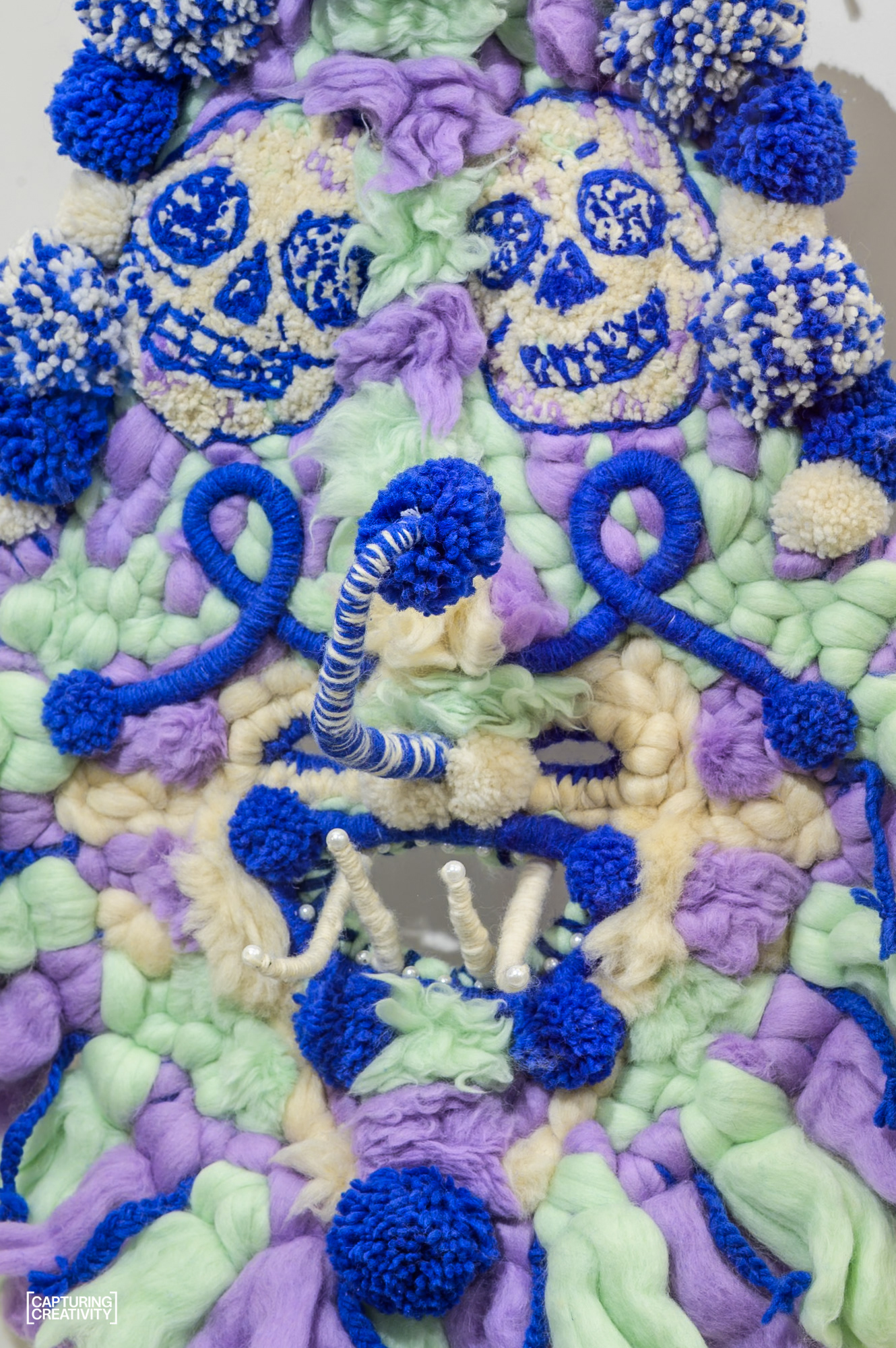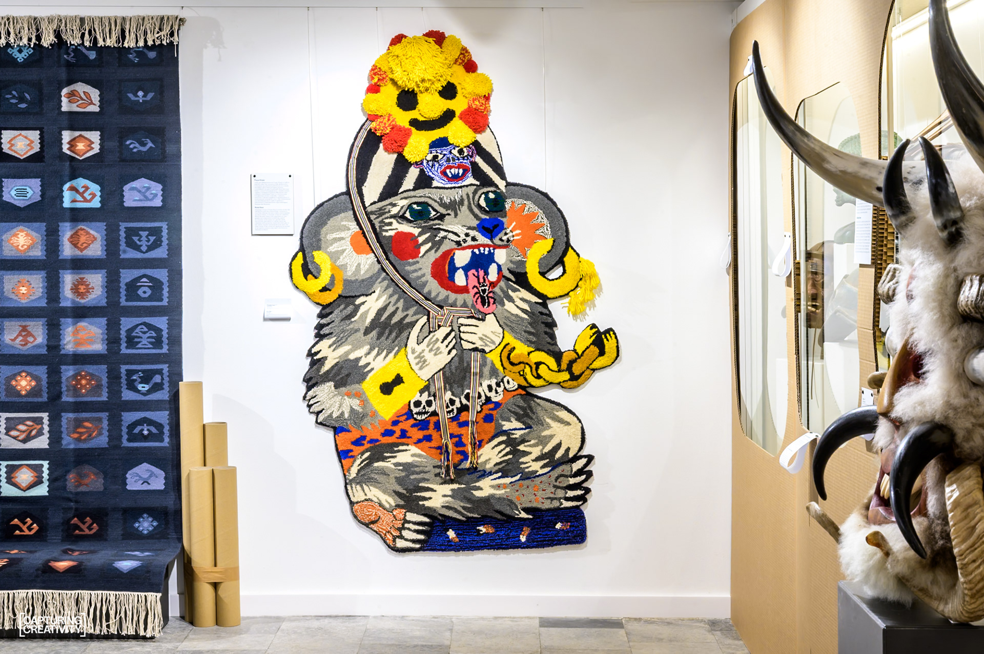 Пред произведенията на Rosie Eisor (Роузи Ейзор) се чувстваме все едно сме срещнали диво животинче – съблазнени да докоснем мекотата, но и малко несигурни дали няма да бъдем ухапани. Съосновател на арт колектива Blood Becomes Water с опит в типографията и независимите издания, натрупан в редица европейски арт столици, напоследък Роузи се специализира в тъфтинга, който съчетава с помпони, мъниста и прочее гиздавини в характерния си митологично-пънкарски стил. Най-скорошната от многобройните ѝ изяви в чужбина е участието във Венецианското архитектурно биенале 2025, където нейният килим е част от Българския павилион.