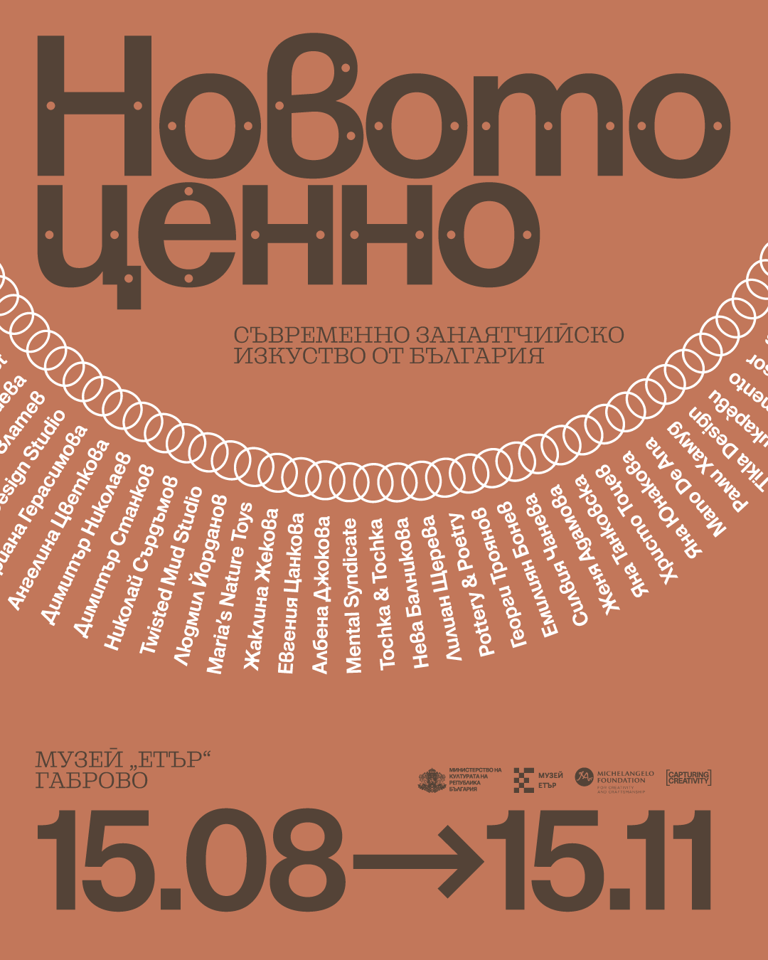 В търсене на непреходността в сферата на красивото и потребното, ви срещаме със селекция свръхактуални постижения на българското занаятчийство, създадени от 41 изкусни автори.