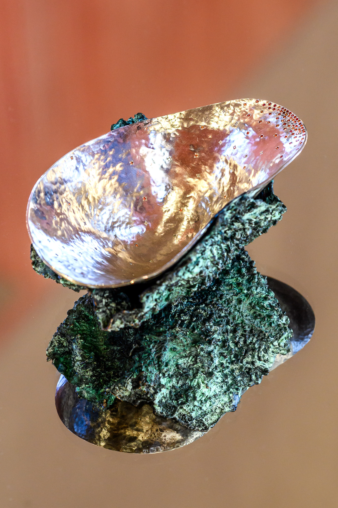 Captivated by the sketches of his mother's fashion designs, little Dimitar Stankov imperceptibly turned to art. Having graduated in Sofia and Antwerp, the young jeweler lives and works in Brussels, where he creates his wonderful objects, reminiscent of sacred relics from another world. Bulgarian folklore, which is one of the author's inspirations, brings a mythological spirit to the complex, precisely executed three-dimensional compositions.